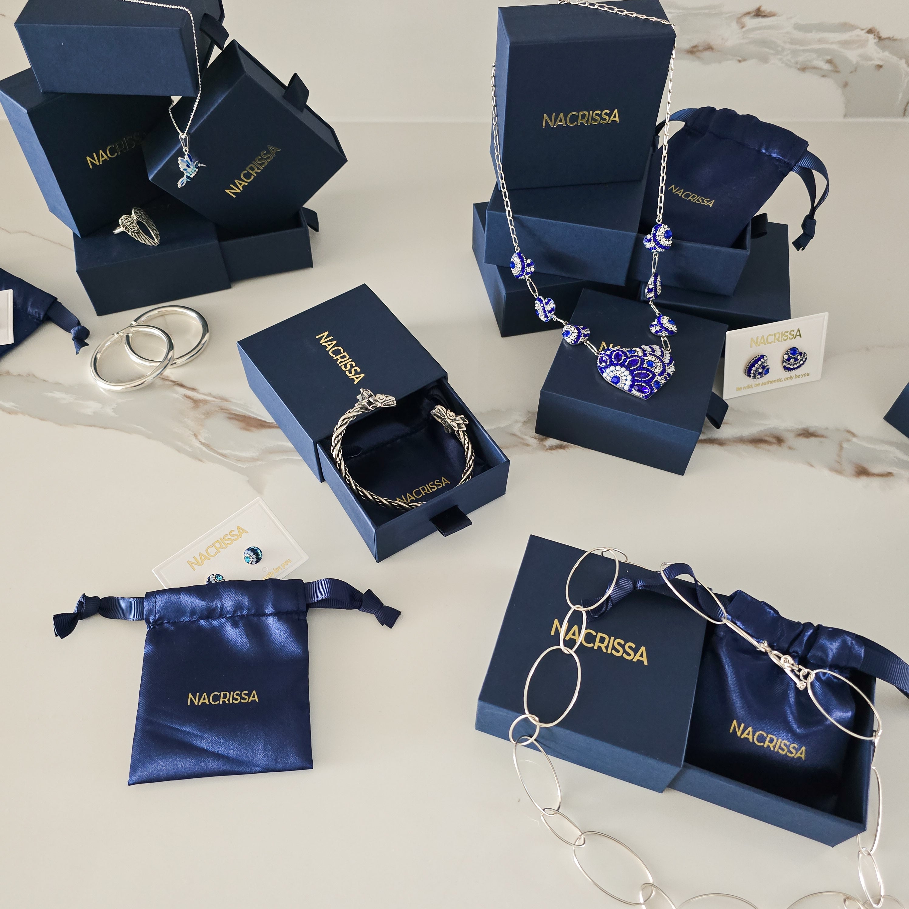 I received my NACRISSA jewelry and I’m so happy with my purchase! The delivery time was very reasonable—just three days from the moment I ordered to when it arrived. The packaging was beautiful, with a lovely shade of blue and a subtle, delicious scent when I opened the box. Such a thoughtful detail!