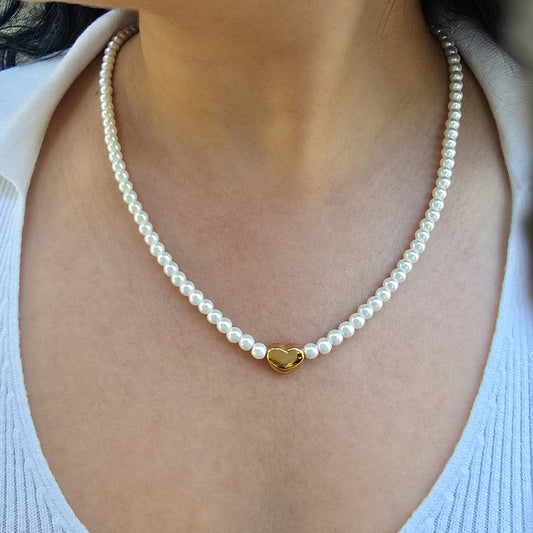 Hearty Pearls - Gold Pendant & Petit Pearls Necklace