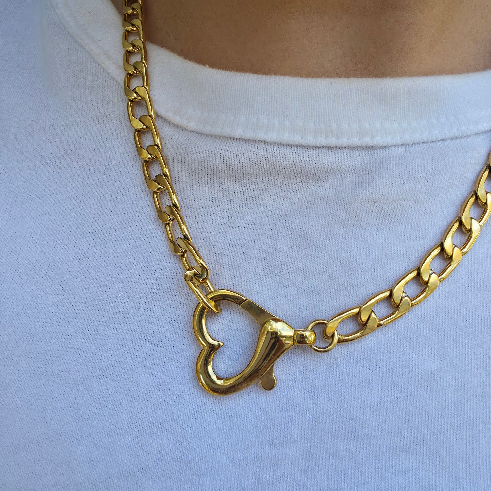 Experience the timeless sophistication and exceptional strength of this 18k gold-plated stainless steel cable chain. Made from premium materials featuring a functional heart-shaped clasp, it adds a touch of luxury to any ensemble while still maintaining its durability and reliability.