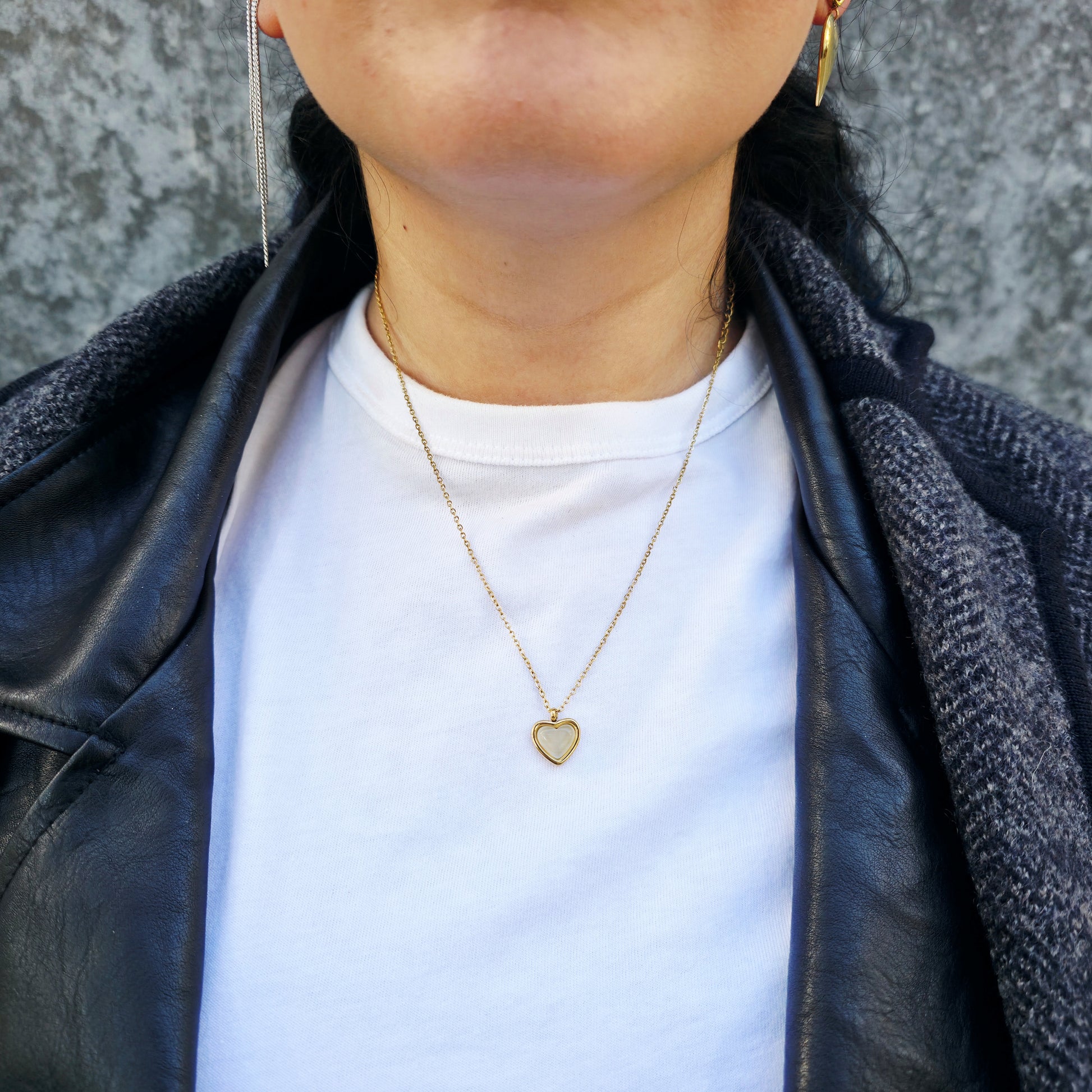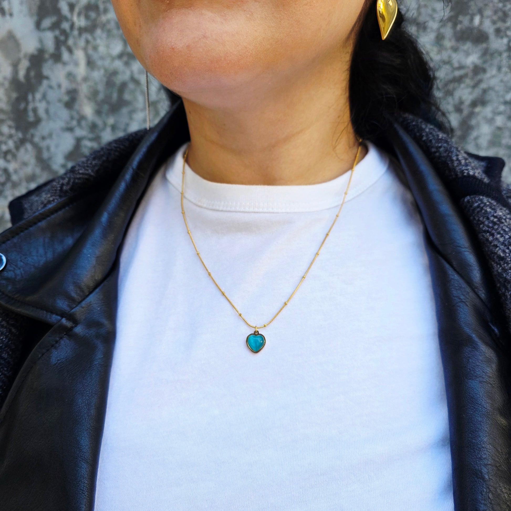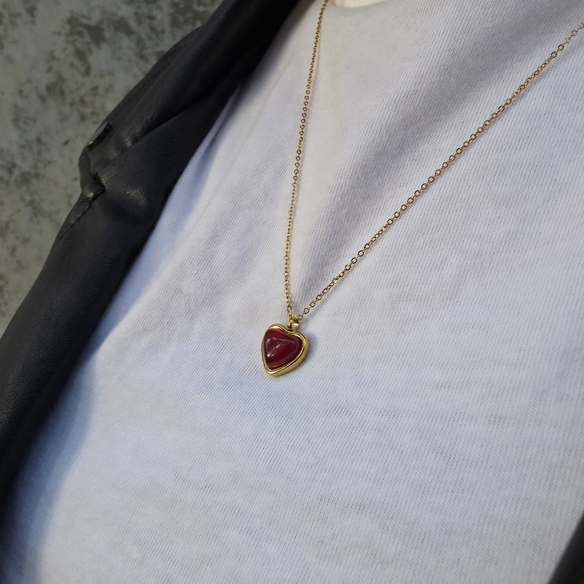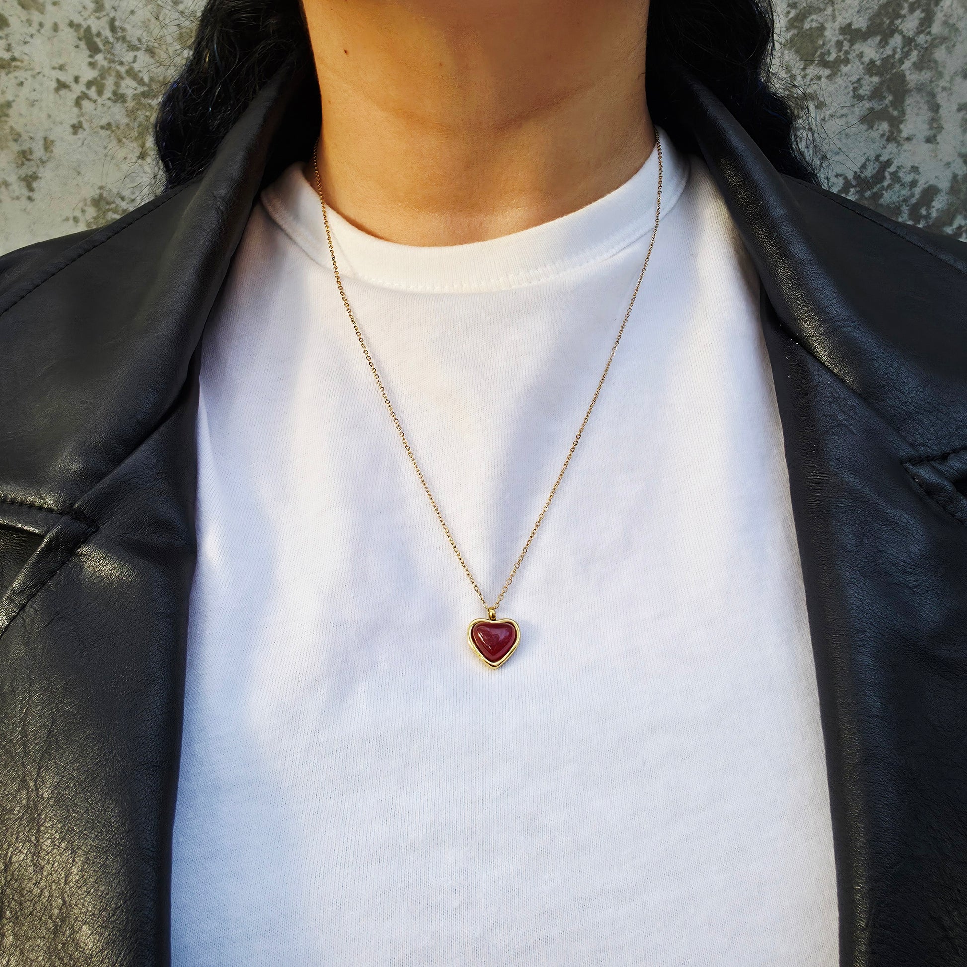 These sophisticated heart-shaped necklaces combine lustrous gold-tone stainless steel with genuine agate and cat eye quartz, an understated yet striking aesthetic—the natural stone associated with emotional and mental strength.